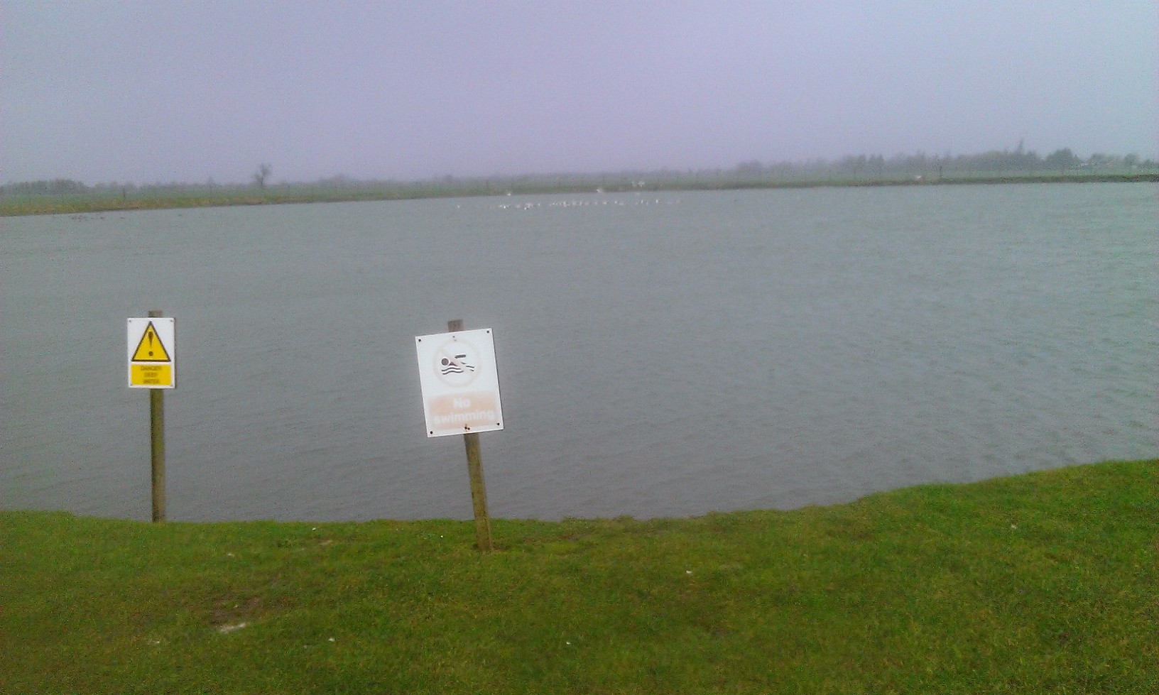 Arch running rivals Mike and Sue ran to a local farm cafe where we all planned to meet up. I decided to run to the farm, a distance of under 2 miles and Ms Alive and Running took Kerry in the car. I battled against a very strong headwind but got to the cafe first. Not opened yet and no-one had arrived so I went for a little jog around the small raised reservoir in the picture. Immediately it started to rain hard and then hail. I was quickly soaked through. Ms Alive and Running dropped Kerry at the cafe and went to collect Mike and Sue who were cowering under branches half a mile away.
