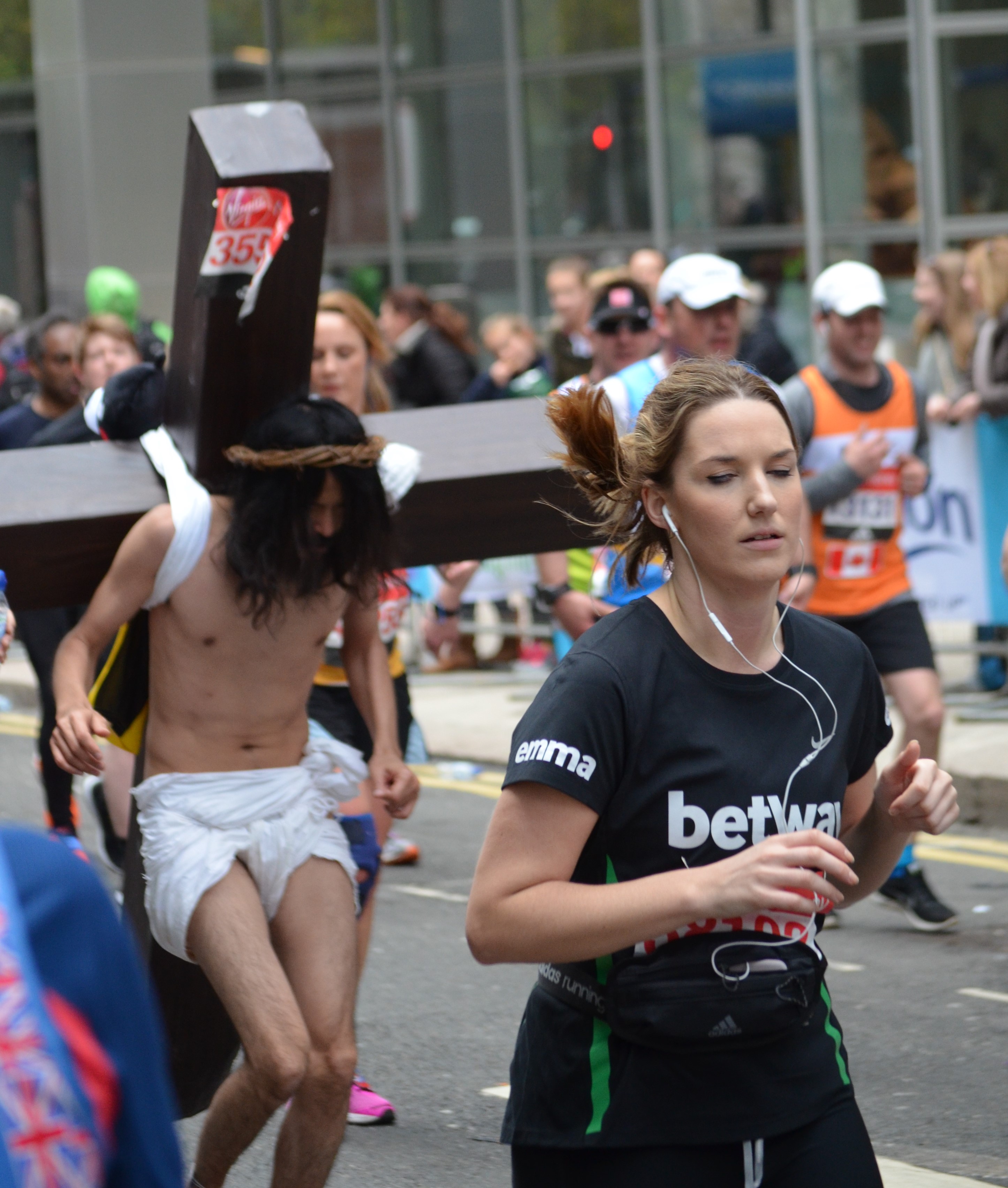 Is this normal? Yes, actually, at least for the London marathon. I deserved my own bravery medal for spectating above and beyond the call of duty. It was very cold around the Canary Wharf area and I felt the harsh wind very keenly. These two seem unaffected but a significant number of people were visibly suffering.