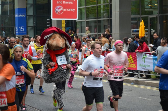 We spent an enjoyable day watching the London marathon near Canary Wharf, around mile 18. We stayed until the sweeper car went past and the race officially finished. And still they came, walking and staggering. It’s always a humbling situation.